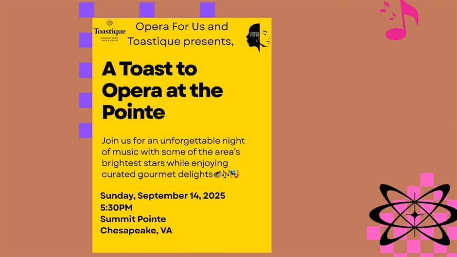 Opera For Us, LLC and Toastique invite you to a polished yet playful night of music, food, and co.t music and good vibes.